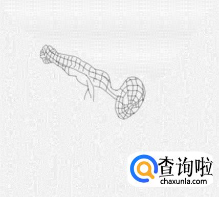 在头的左侧位置再画出蜘蛛小的左胳膊及手部,然后再画出胳膊上的蜘蛛网格线,如图所示: