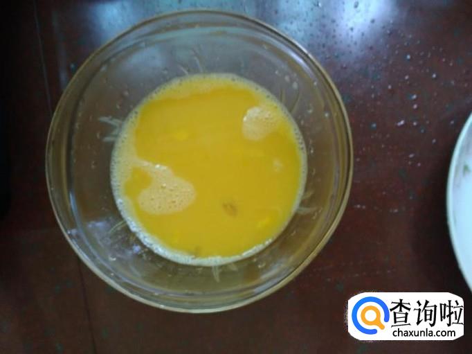 将鸡蛋打入碗中,加一点盐,用筷子不停搅拌差不多一分钟即可,待用。