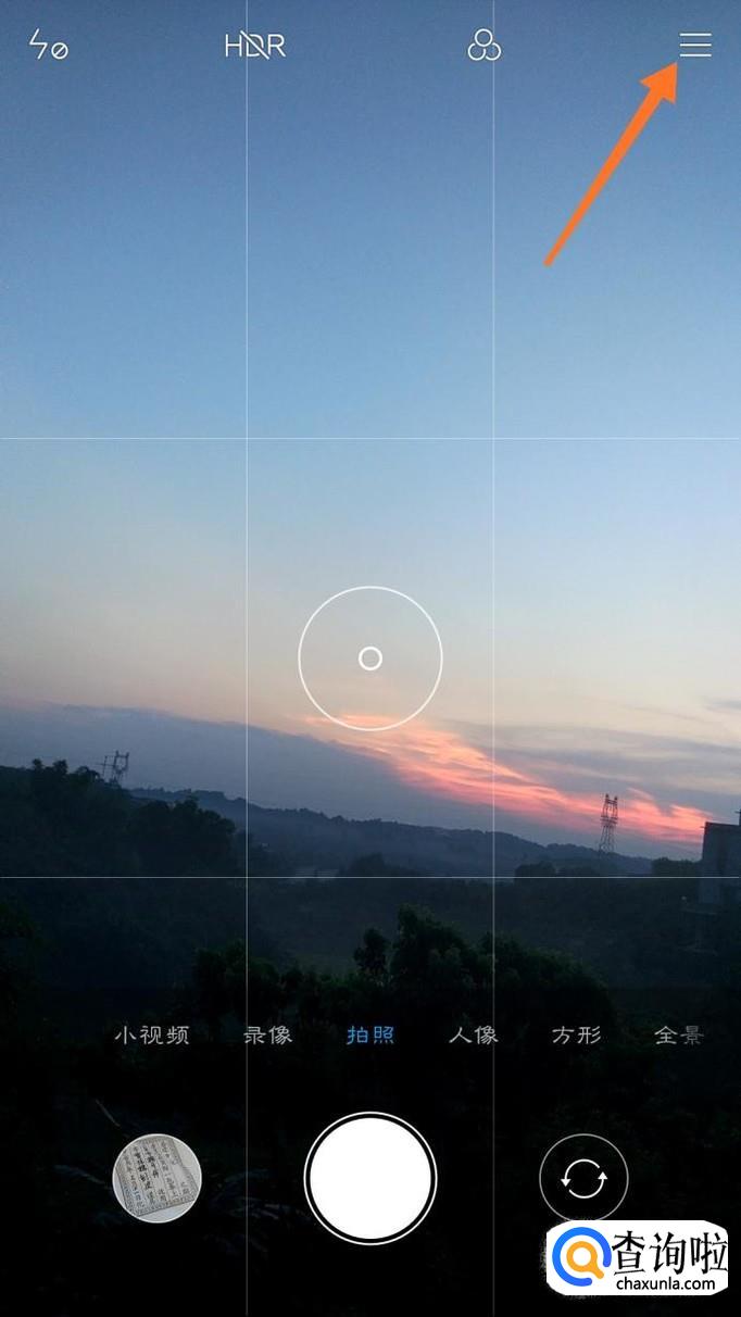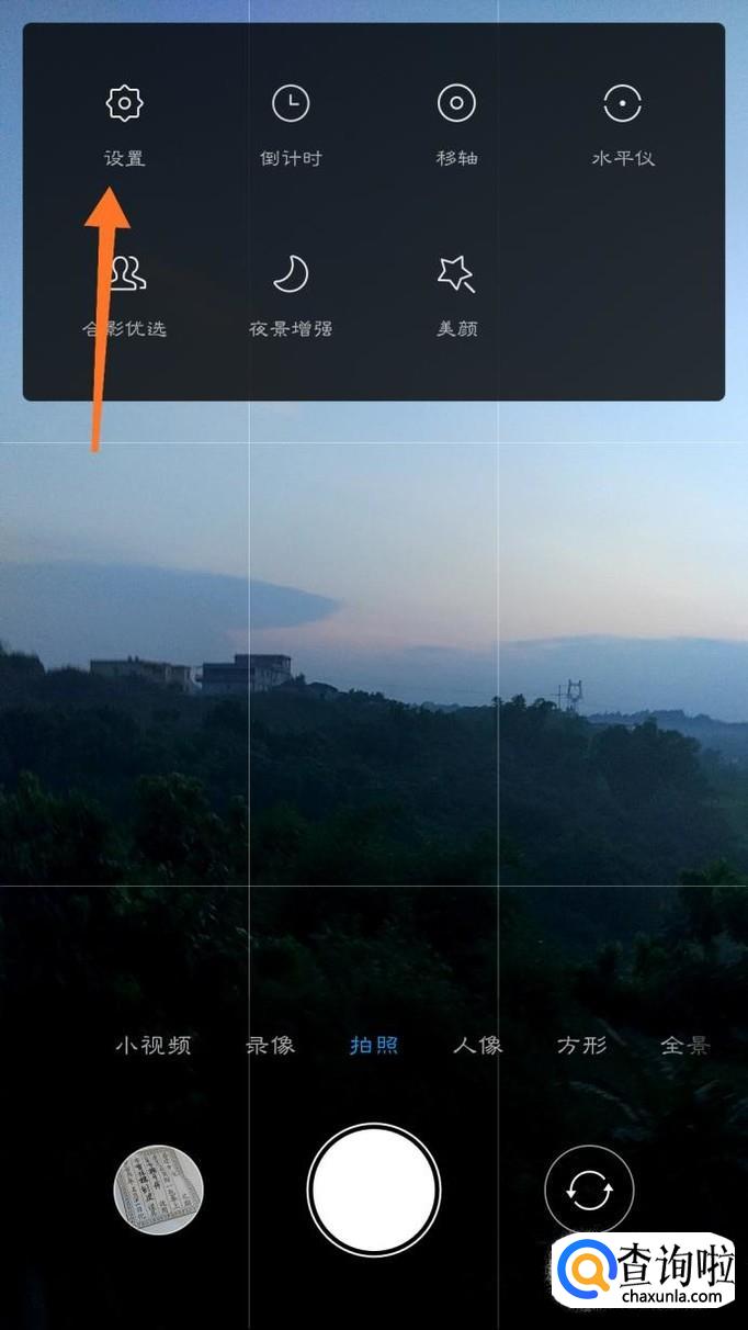 打开相机之后,在任意一个拍照模式中点击右上角的三杠线,然后点击设置。