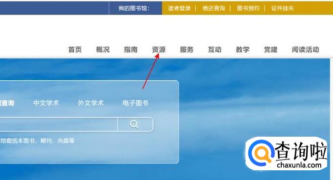 点击图书馆首页上方的资源,再点击知网。