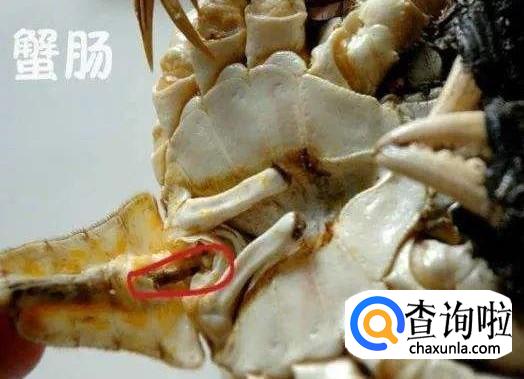 蟹肠 蟹肠和其他动物肠道一样,装的是螃蟹的排泄物,也是蟹胃和肚脐相连接的管道,非常脏,打开蟹壳时一般会直接抽掉,但是也有在抽取过程中被拉断的,导致部分蟹肠留在蟹黄里面。
