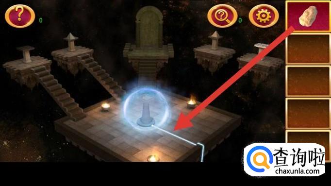 用石头切断保护罩的能量,显现出石台。