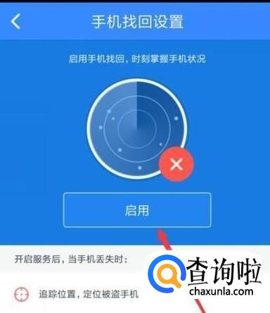 这时就可以打开手机找回设置页面了,点击“启用”按钮,这样以备日后万一丢了手机可以快速的找回来。