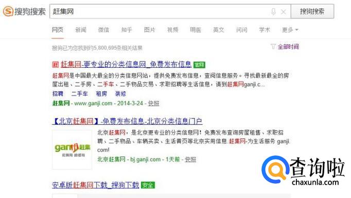 打开搜狗搜索,搜索赶集网,打开官网登录自己的账号,如图所示。