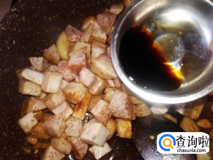 鸡胸肉100克,香芋1个,姜蓉、蒜米适量,生抽、料酒、老抽适量。