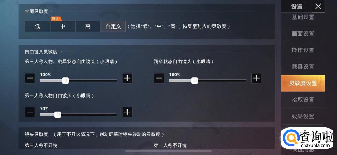 先来设置全局灵敏度和自由镜头灵敏度。