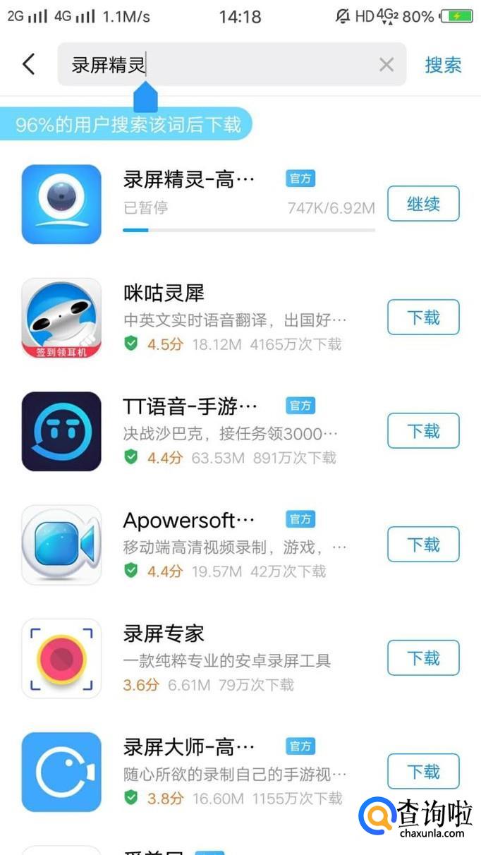 进入之后,搜索“录屏精灵”,将其下载并安装到手机上面,如图所示。