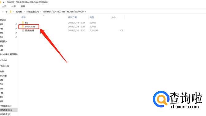 点击enter键,进入如下文件夹。点击进入“vodcache”文件夹。