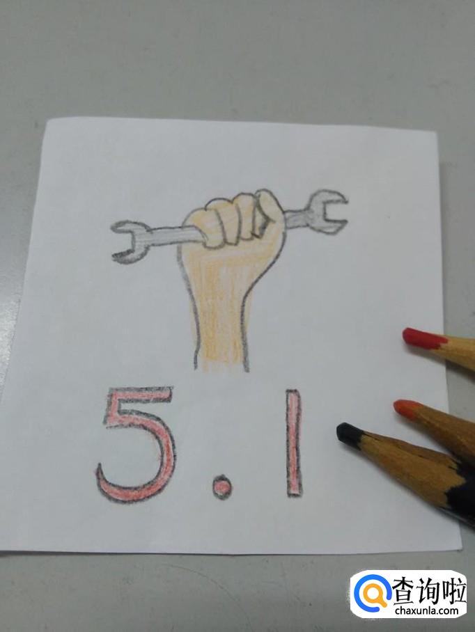 最后,用红笔涂数字和小圆圈,用肉色涂拳头,用黑笔轻轻地涂搬手,五一劳动节简笔画就画完了。