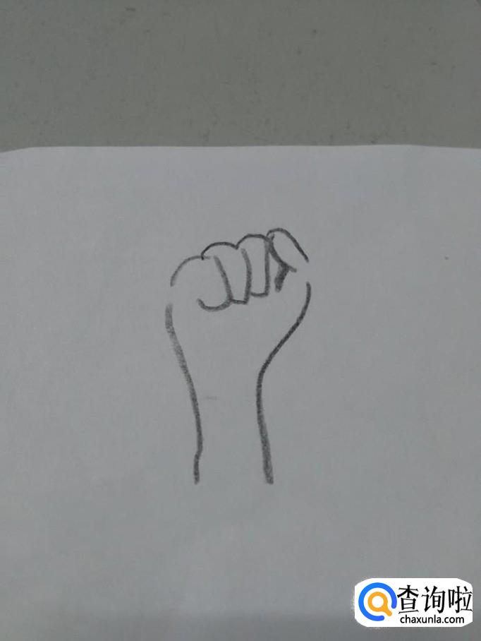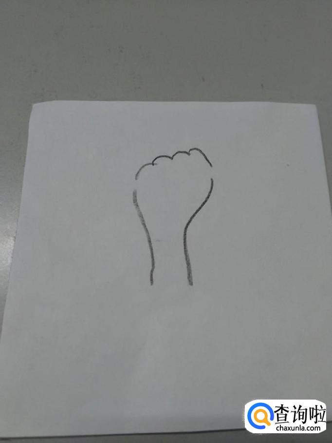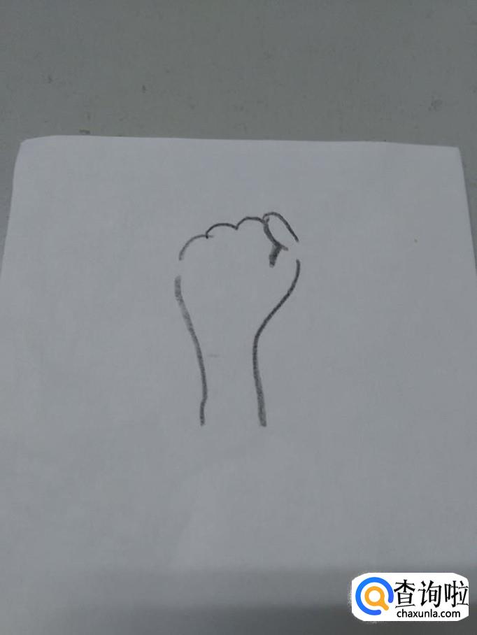 先用黑笔在纸上画出拳头和手腕的轮廓。