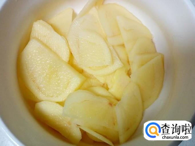 土豆去皮,用水清洗干净,控干水分,切成片。放入水中浸泡一下,去除淀粉成分,然后再用水投几遍,控干水分。