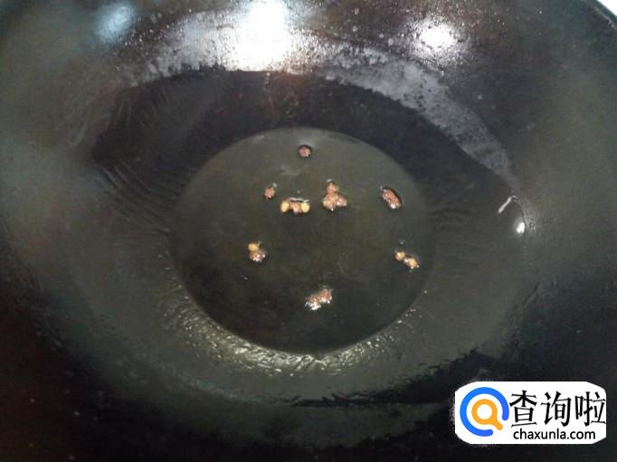 锅里放入油加热,油热后放入花椒爆锅。放入肉片翻炒。