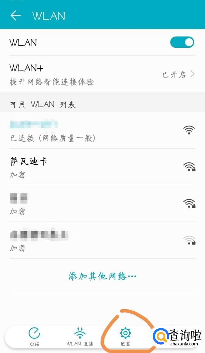 找到WIFI 设置的界面后,点击界面下方“配置”选项