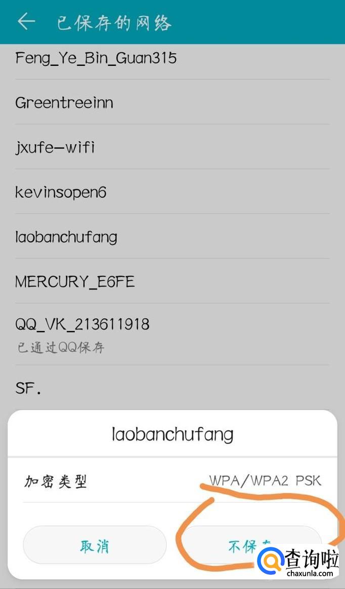 在弹出来的选项中选择“不保存”即可删除多余不用的WIFI 列表