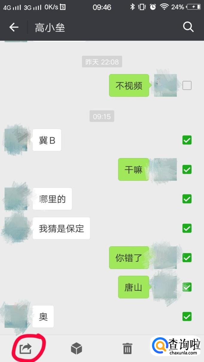勾选想要转发的聊天记录,点击左下角的转发按钮。