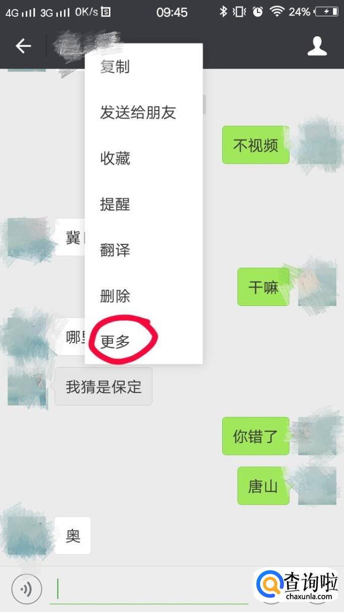 打开微信,点开想要转发的聊天记录对应的聊天窗口。长按任意一条聊天记录,点击“更多”。