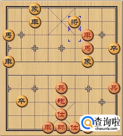 红车只要横向移动一下,黑方老将就会被将死。于是,黑方将6退1,黑方老将趁着红方车别住红方马马腿之际,后退了一步,以便逃脱红方的绝杀。如图所示。