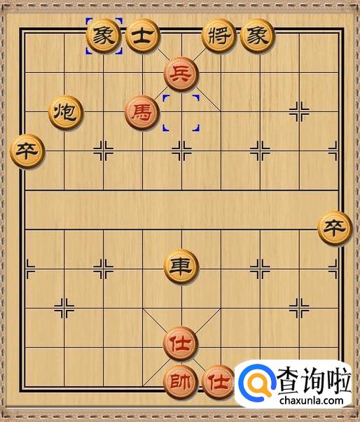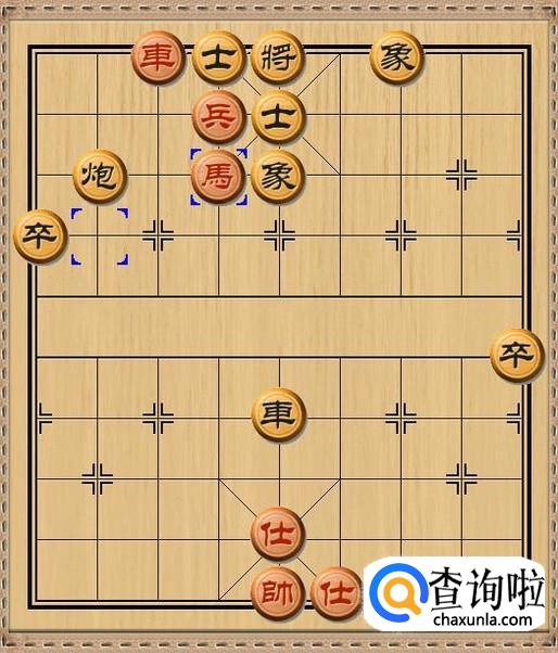 红方马八进六,红方左面的马跳到挂角的位置,对黑方老将形成了挂角马。支援了红方前线的战斗力。如图所示。