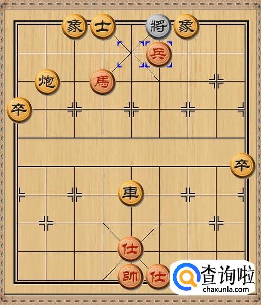 红方兵六平五,红方过河兵移动到中路,强行杀掉了黑方中士,控制了黑方的九宫之中,也就限制了黑方老将的移动。如图所示。