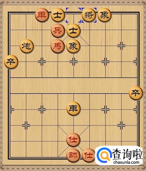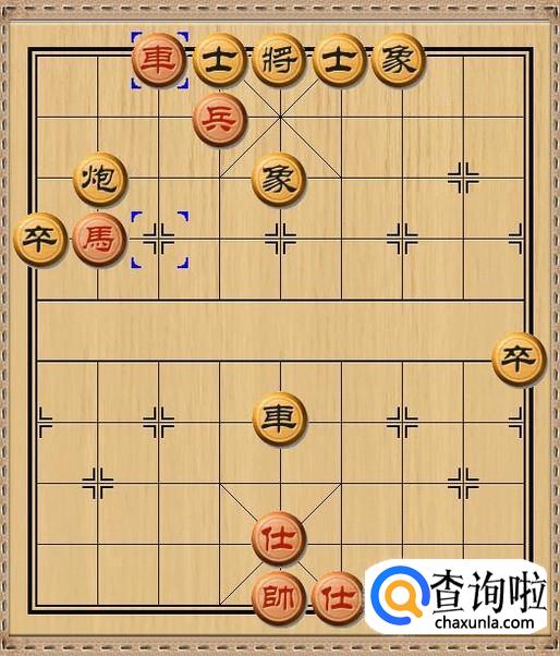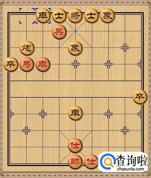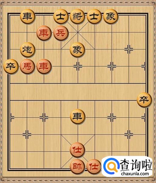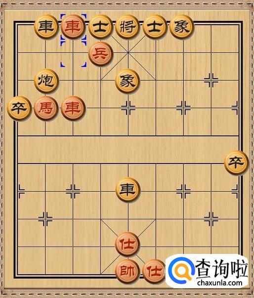 红方先行,红方前车进一,红方前车下到黑方底线,准备和红方过河兵配合强行杀掉黑方士。当然,红方前车首要任务是作为兑换掉黑方底线上的黑车的牺牲品。如图所示。