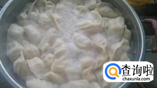 当锅里的水开后,等饺子浮上来时,要给锅里分三次加入三勺冷水直至煮熟。