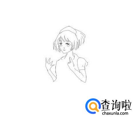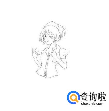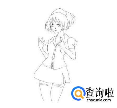 再在两只胳膊的额基础上再画出性感少女的身体及衣服,如图所示: