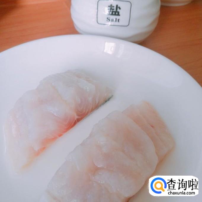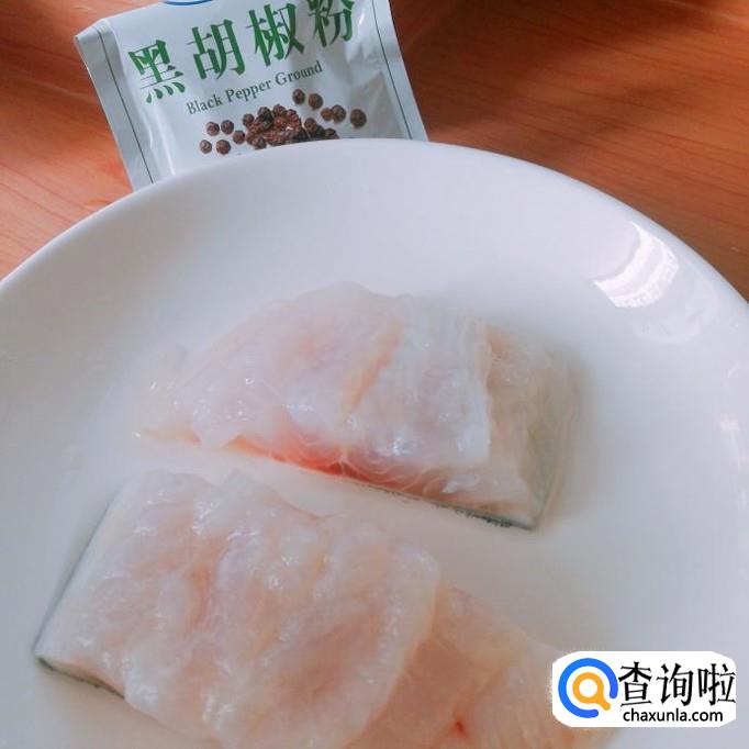 将撒有食盐、黑胡椒的巴沙鱼在盘子中腌制5-10分钟。