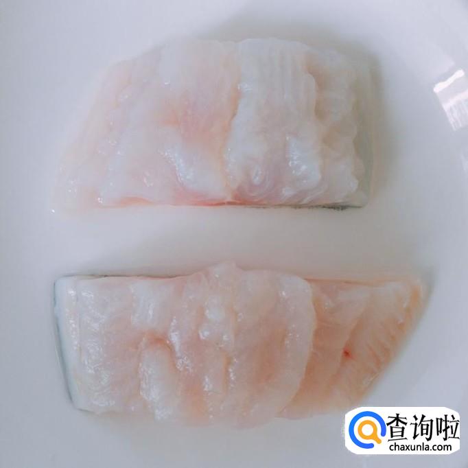 将从超市里买的巴沙鱼块放入碗中,等待它自然解冻。解冻完成后,把水倒掉,并吸干肉中水分。