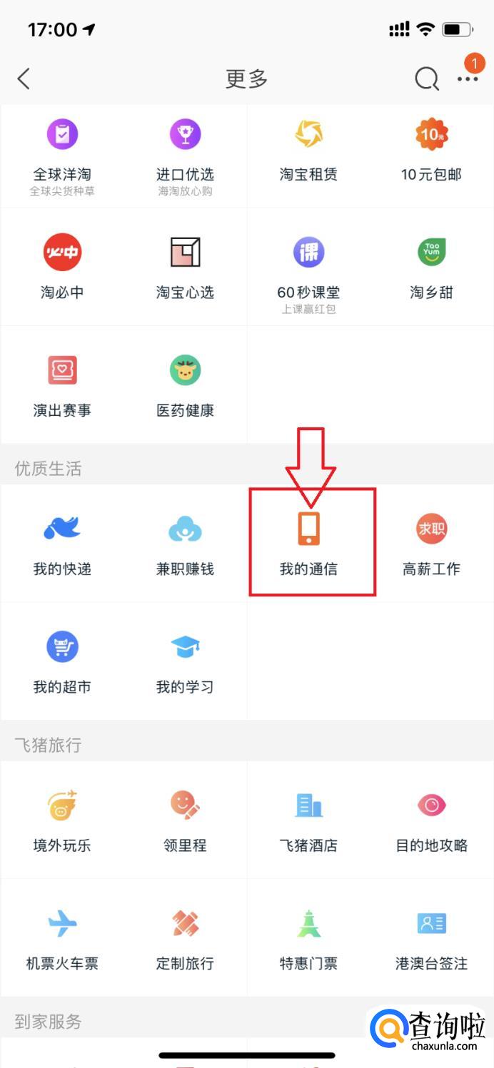 在”优质生活”中选择“我的通信”并打开,如图所示。
