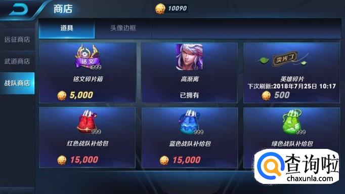 你也可以通过消耗一定数量的战队金币,进入战队商店购买铭文碎片。