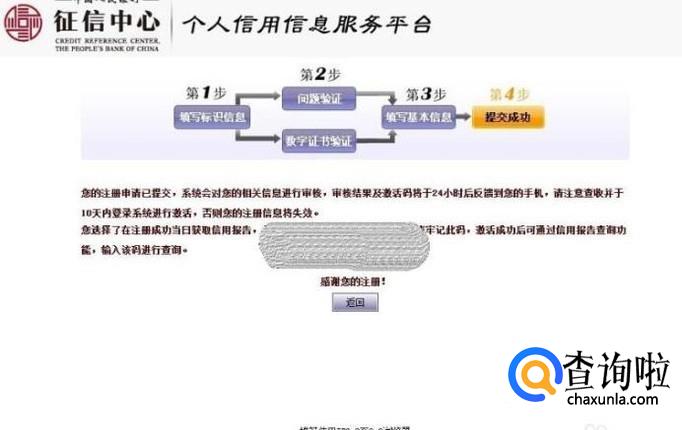 信息填写完成后点击提交,此时你的提交申请正在审核当中。审核通过后你就拥有了自己的个人信用账号了。