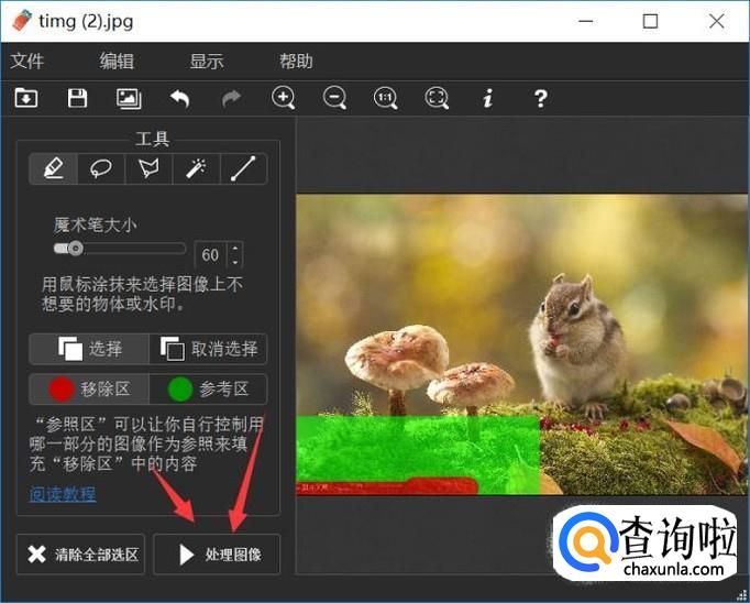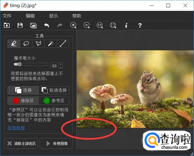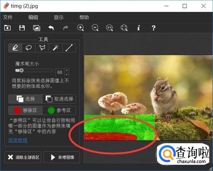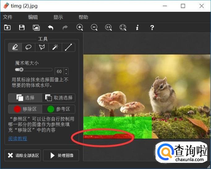最后就是将水印区域完全选择,其他区域选择越少越好。