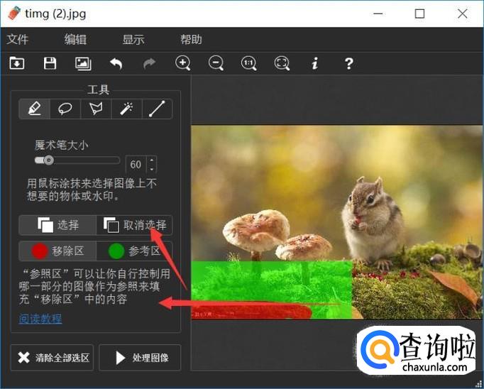 如果我们选择多了,可以单击取消选择功能,将多余的部分取消优化