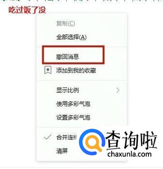 接着长按我们的消息并点击撤回消息,如下图所示。