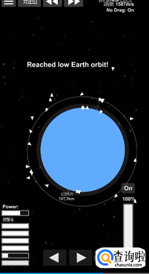 当火箭位于抛物线最高点之后,我们就可以启动设置好的燃料程序,让火箭在轨道上飞行一周,然后停止燃料程序。