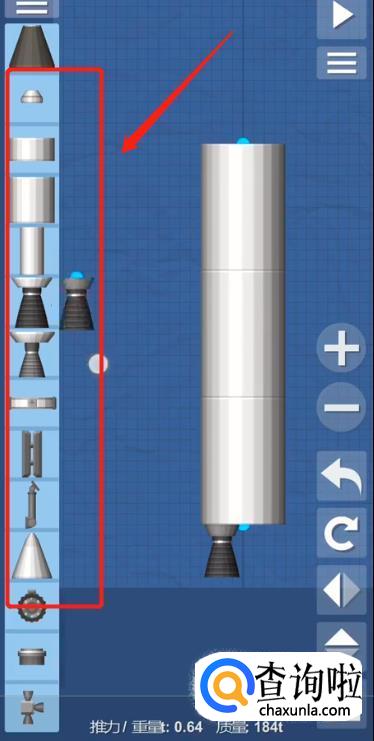 首先利用各种零件设计建造我们的火箭,如图所示。