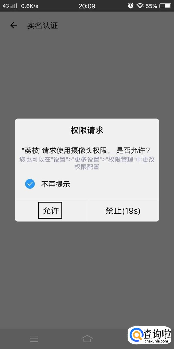点击直播后,系统会自动对用户进行身份验证,首先需要允许荔枝FM使用摄像头的权限,如图所示