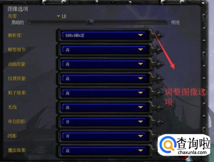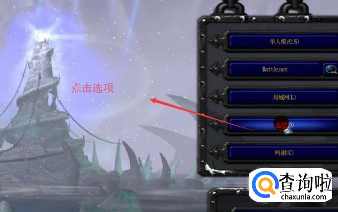 接下来登录魔兽争霸游戏,选择右侧的选项按钮,如下图所示