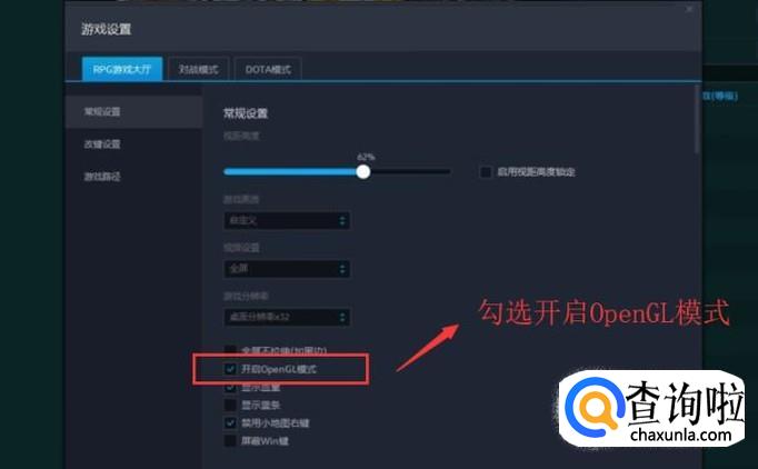 首先我们需要打开对战平台的游戏设置界面,勾选OpenGL模式选项,如下图所示