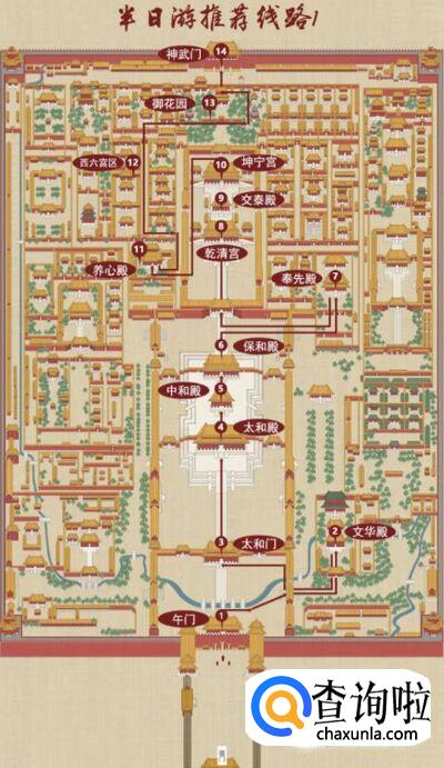 故宫半日游推荐线路: