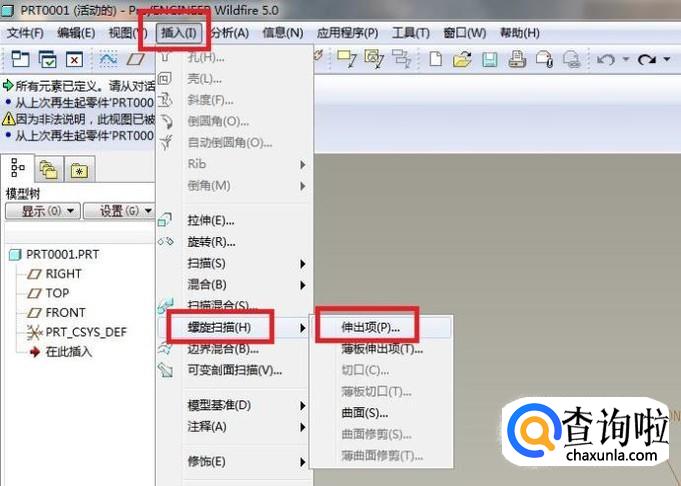 分别在FRONT面和新建的基准面上进行拉伸实体操作,