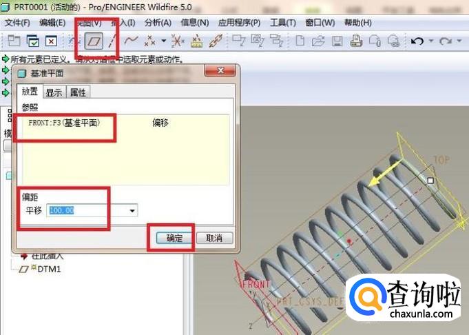 一个简单的压缩弹簧就在Pro/e中造出来了。