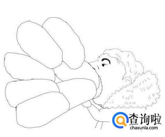 最后我们再画出人物的胳膊及手部,然后再画出人物的身体,这样网红表情吃热狗就画好了,如图所示: