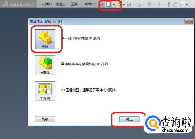 新建一个空白的零件文件。