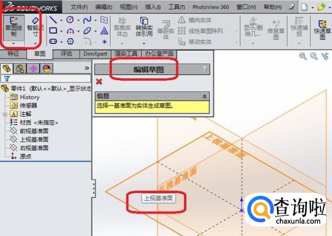 然后,我们选择一个基准面作为草图平面。(笔者选择了上视基准面)。