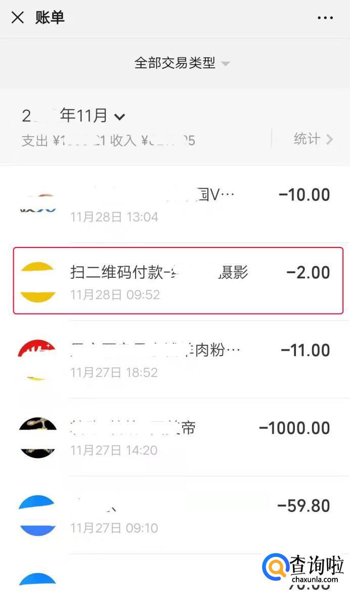 这时我们就能看到最近自己使用微信支付过的账单记录,点击自己要联系的那个人。