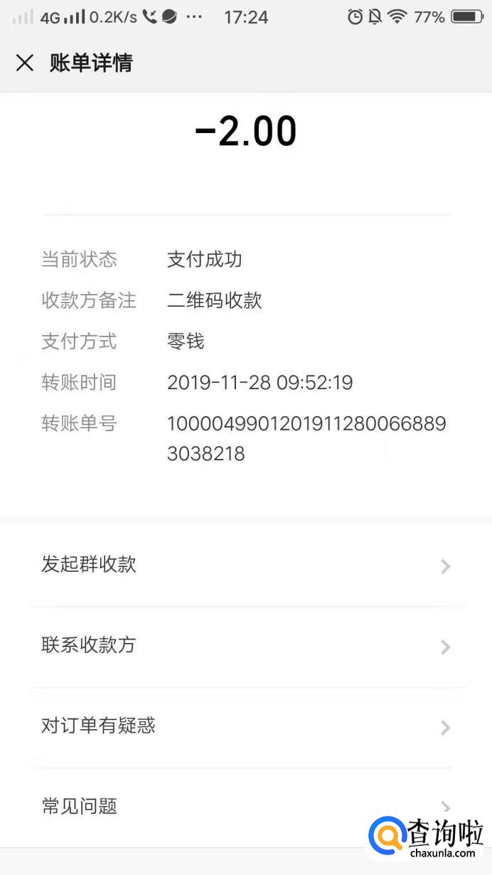 然后选择“联系收款方”。
