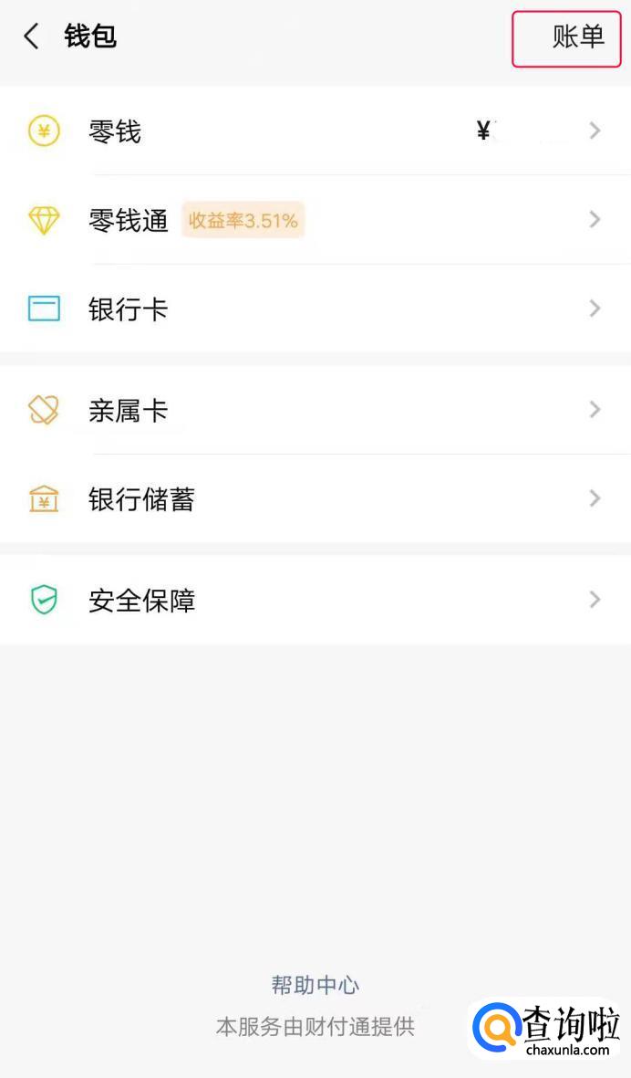 点击右上角的“账单”。