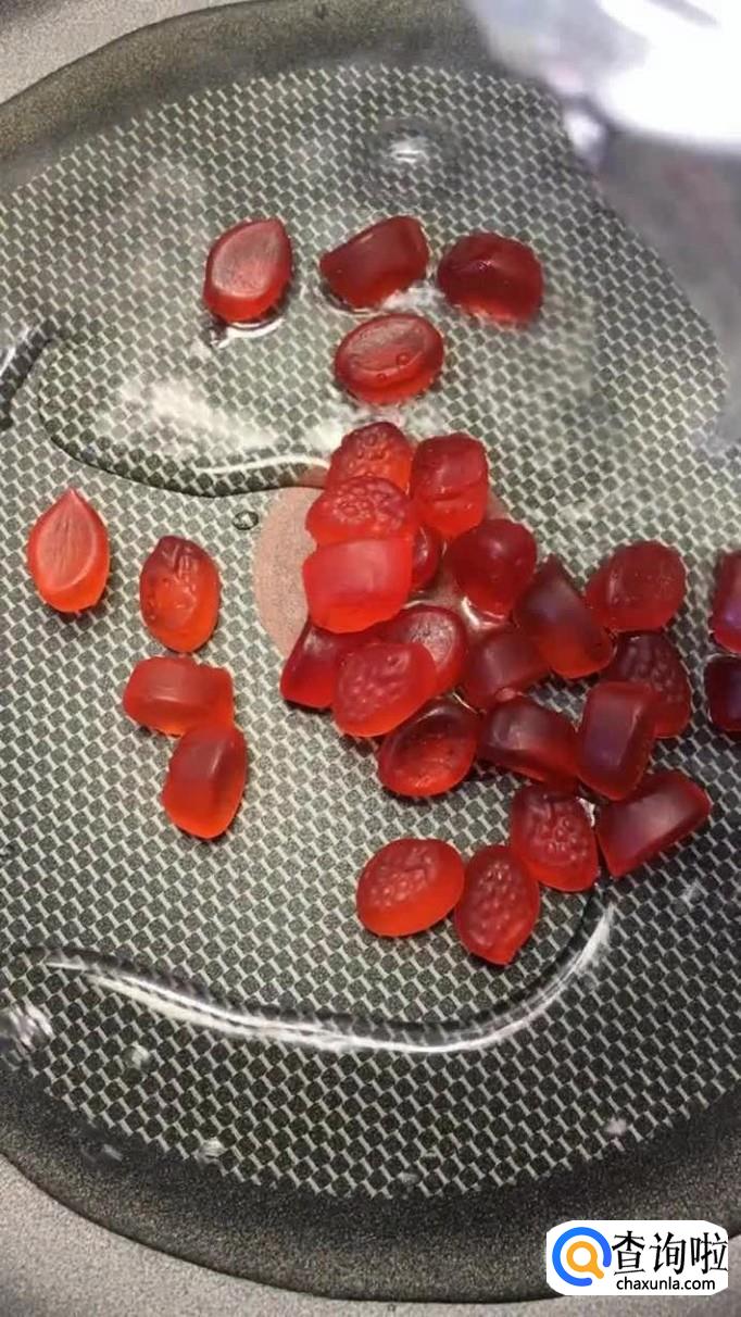 首先,在锅内加入一包的红色QQ糖并加入小半碗的清水煮开,如下图所示。
