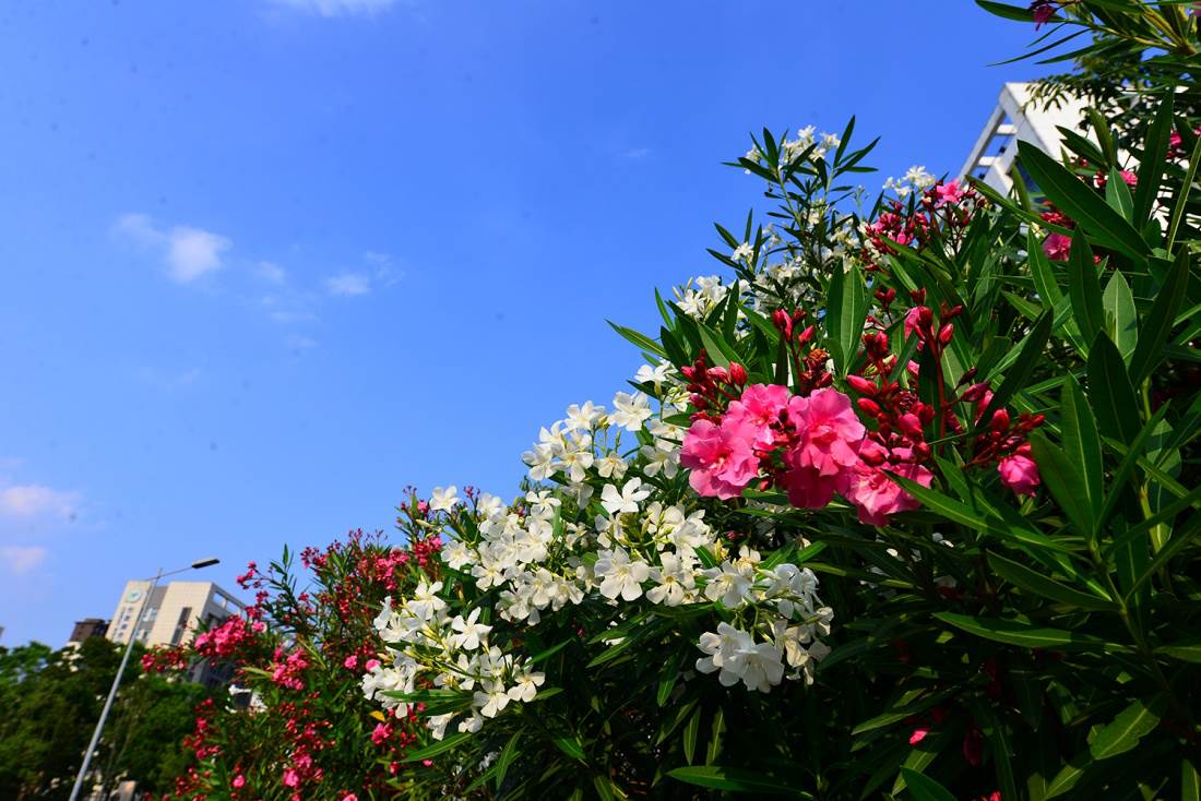 夹竹桃不能栽在门口,夹竹桃的叶、皮、根和花都含有毒性,但是植株的花朵美丽,将其放置在门口,容易被过路的人采摘,从而就会导致人体产生不良反应,因此最好将夹竹桃放置在人员走动较少的地方。